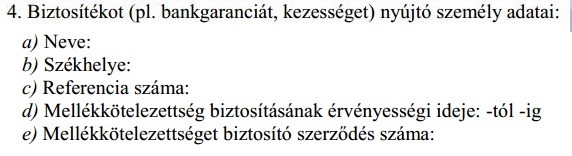 A biztosítékot nyújtó adatait abban az esetben kell megadni, amennyiben mellékkötelezettség érvényesítésével kapcsolatban nyújtják be a kérelmet.