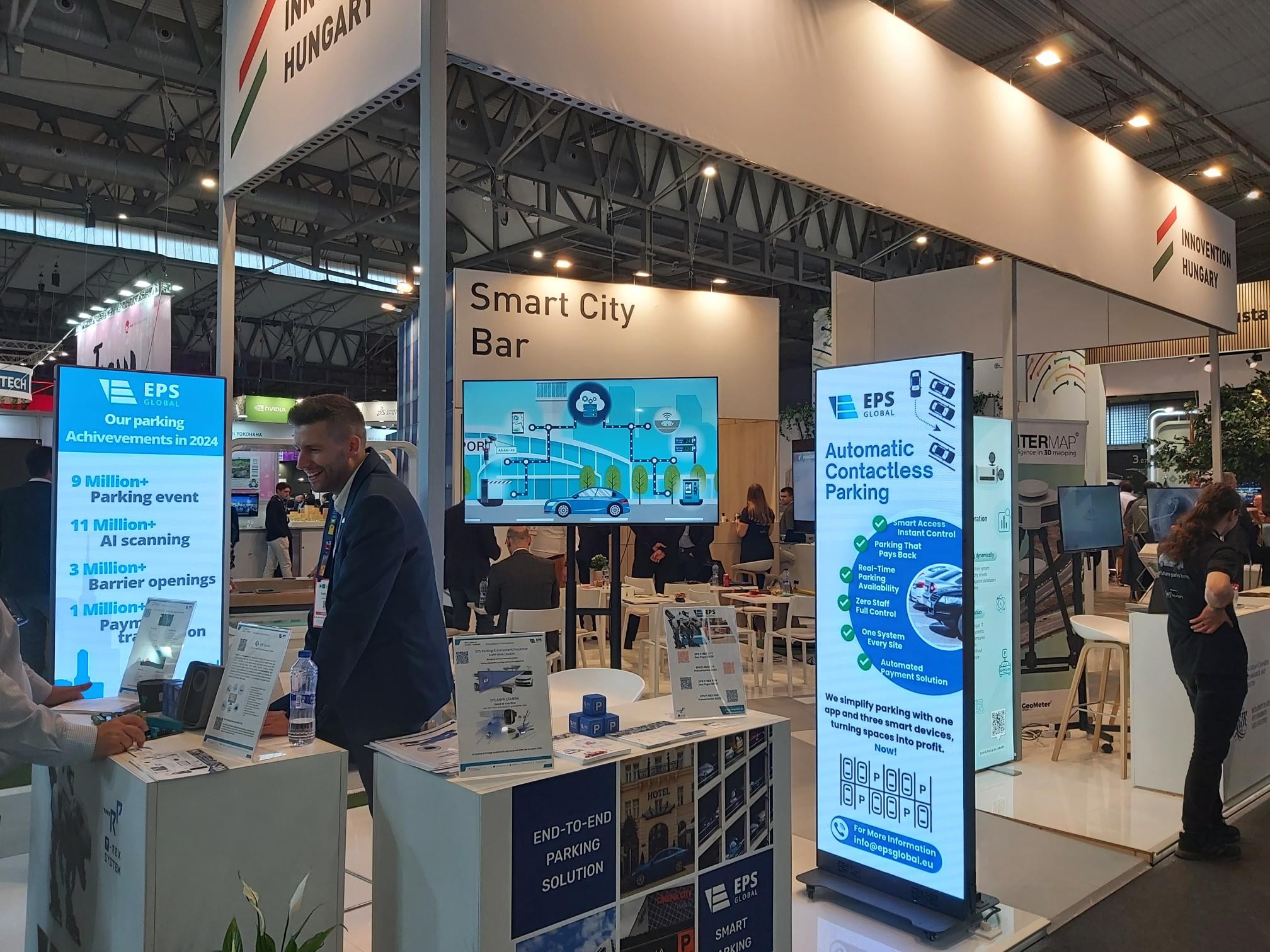A Magyar Kereskedelmi és Iparkamara (MKIK) és a Budapesti Kereskedelmi és Iparkamara (BKIK) közösen képviseli hazánkat a Smart City Expo World Congress szakkiállításon Barcelonában, 2025. november 3–6. között. A részvétel a Vállalkozásfejlesztési Projekt keretében, a Nemzetgazdasági Minisztérium támogatásával valósul meg, amely az exportképes kis- és középvállalkozások nemzetközi piacra lépését segíti elő.A „Innovention Hungary” közösségi stand idén 120 négyzetméteren mutatja be a magyar innovációs ökoszisztémát. A stand világszínvonalú megjelenésével, nagy méretű LED-falaival, zöldfalával és vizuális installációival a magyar kreativitást és technológiai fejlesztéseket emeli ki. A pavilon már a nyitónapon is élénk érdeklődést keltett: számos látogató áll meg a stand előtt, és ismerkedik a magyar vállalkozások megoldásaival.A 12 kiállító vállalkozás az informatika, a digitalizáció és az okos városi technológiák (smart city megoldások) területéről érkezett, hogy bemutassa termékeit és szolgáltatásait a nemzetközi közönségnek. Az innovatív fejlesztések között szerepelnek többek között okospadok, okoszebrák, digitális és háromdimenziós térképrendszerek, szélenergia-alapú megoldások, zöldtető- és kamerarendszerek is.A kiállító cégek mellett három intézmény is jelen van kiegészítő szakmai partnerként: a HEPA Magyar Exportfejlesztési Ügynökség, a Neumann János Nonprofit Közhasznú Alapítvány, valamint a Felsőfokú Tudományok Intézete.A magyar pavilon az idei Smart City Expo egyik figyelemfelkeltő, innovatív megjelenésű standjaként képviseli hazánkat, és bemutatja, hogy Magyarország aktív szereplője az európai okosvárosi és technológiai innovációk világának.