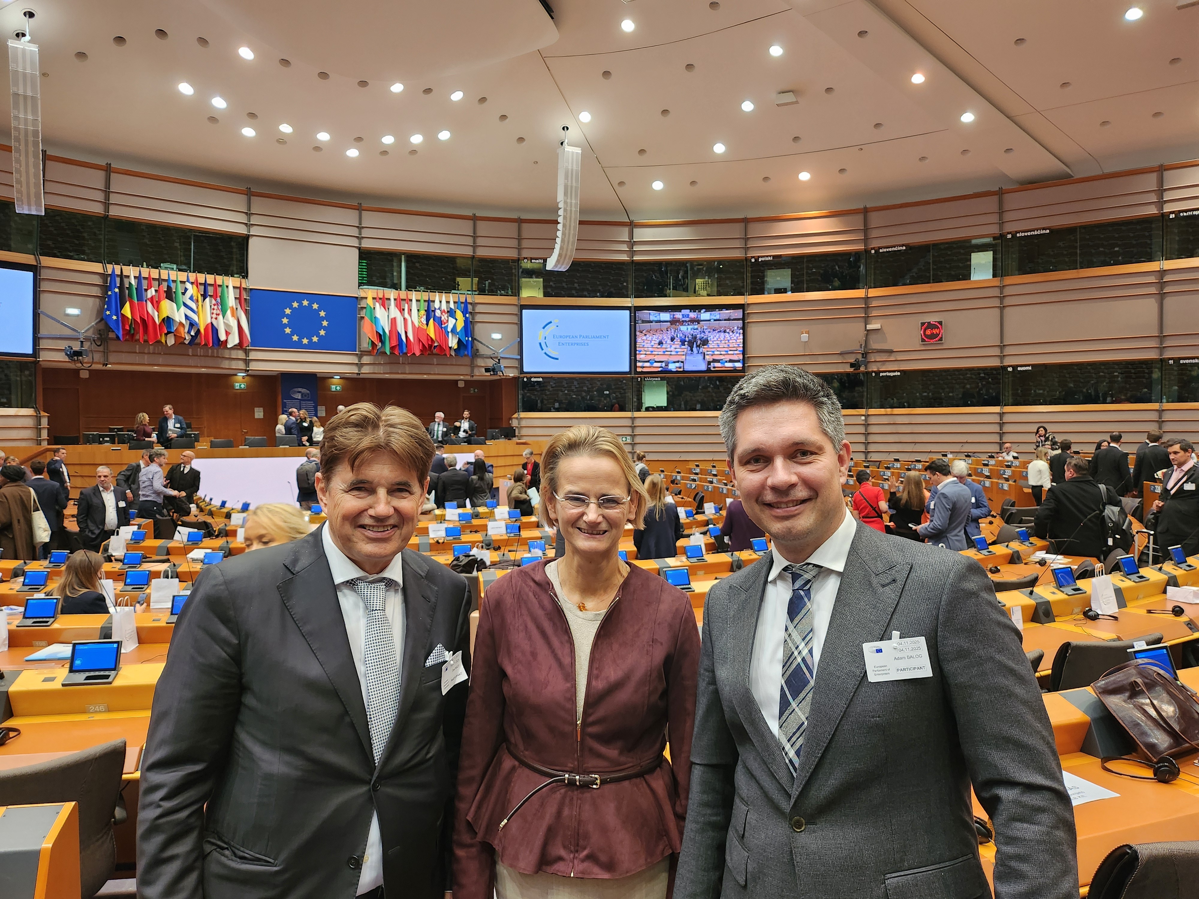 Huszonhét fős magyar delegáció érkezett az Európai Parlamentbe (EP), ahol Dr. Győri Enikő EP-képviselő előadást tartott a delegáció tagjainak az uniós jogalkotási aktualitásokról az EP épületében.A program folytatásaként Dr. Győri Enikő, Nagy Elek, a Magyar Kereskedelmi és Iparkamara elnöke és Dr. Balog Ádám, a Magyar Kereskedelmi és Iparkamara alelnöke az EP plenáris ülésén vett részt. Nagy Elek elnök beszédet mondott a plenáris üléstermében, amelyet a kivetítőn is közvetítettek. A látogatás kiemeli Magyarország aktív szerepvállalását az uniós döntéshozatalban.